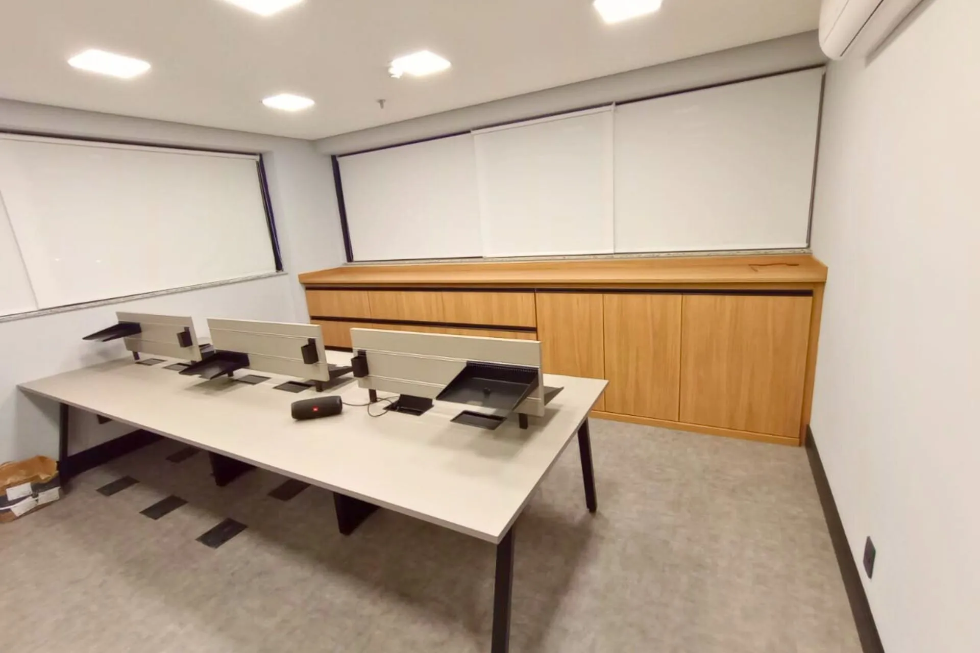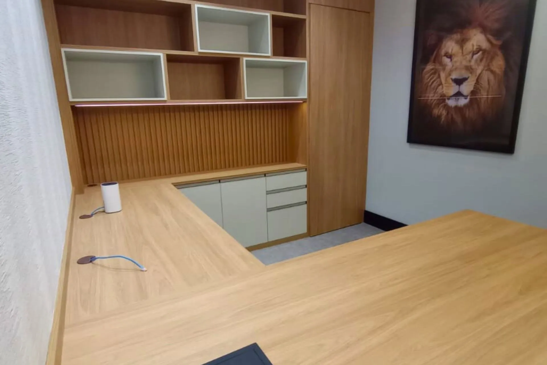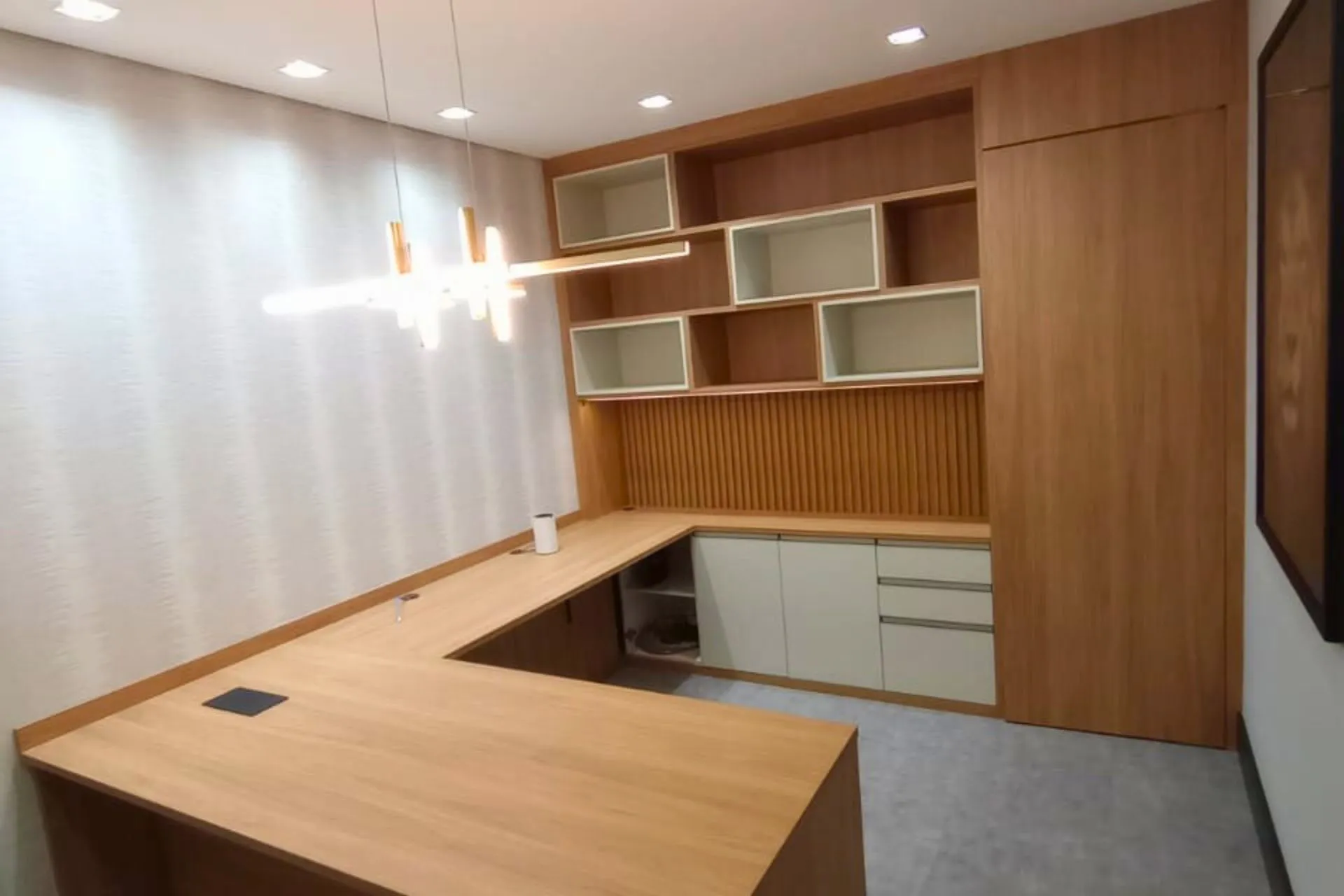 Funcionalidade e design sob medida para um ambiente profissional produtivo e sofisticado.