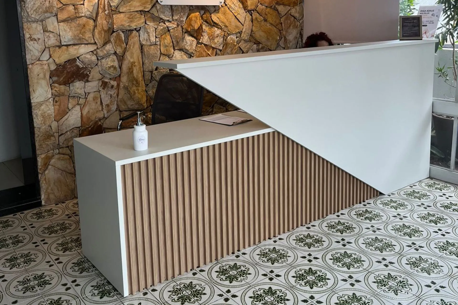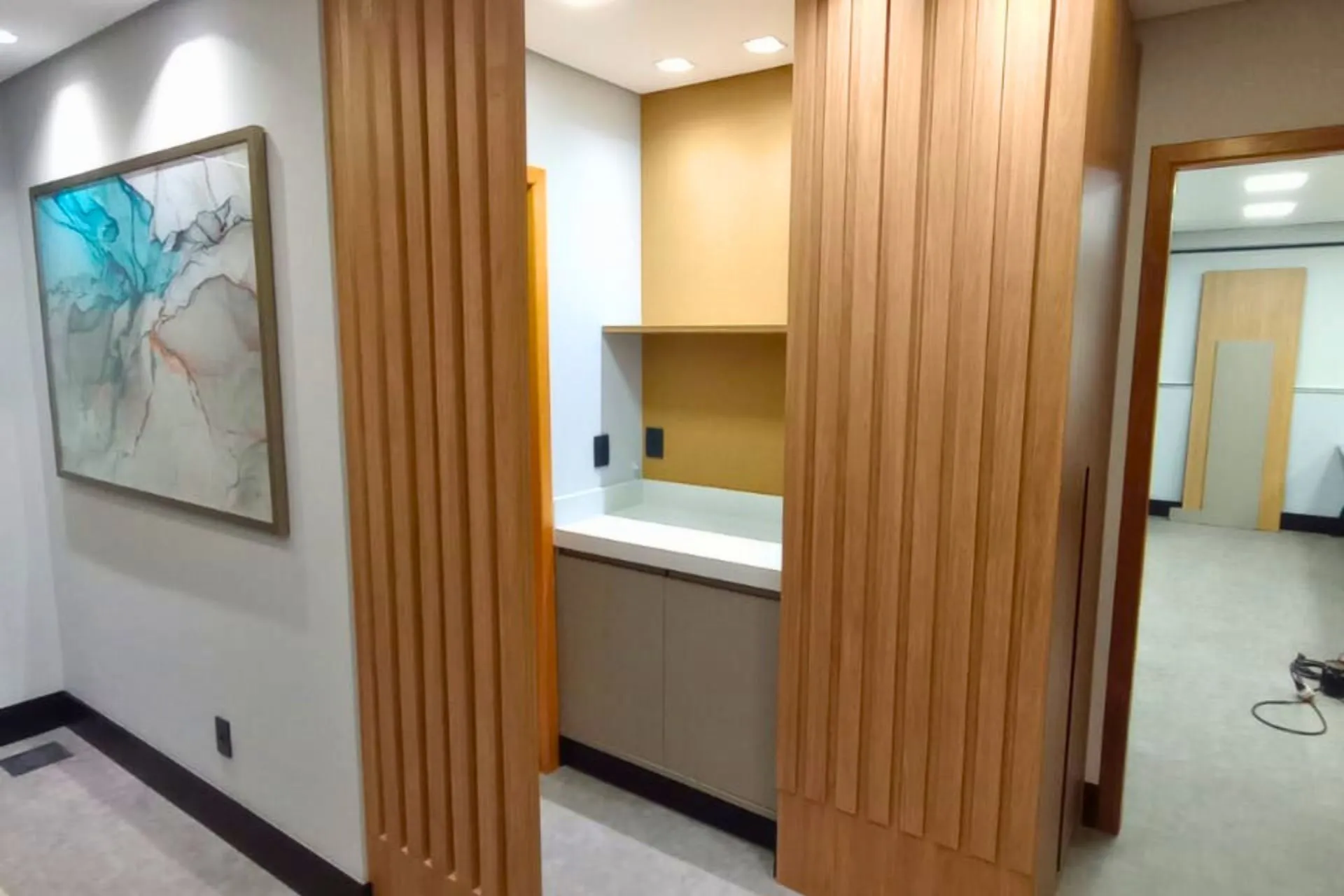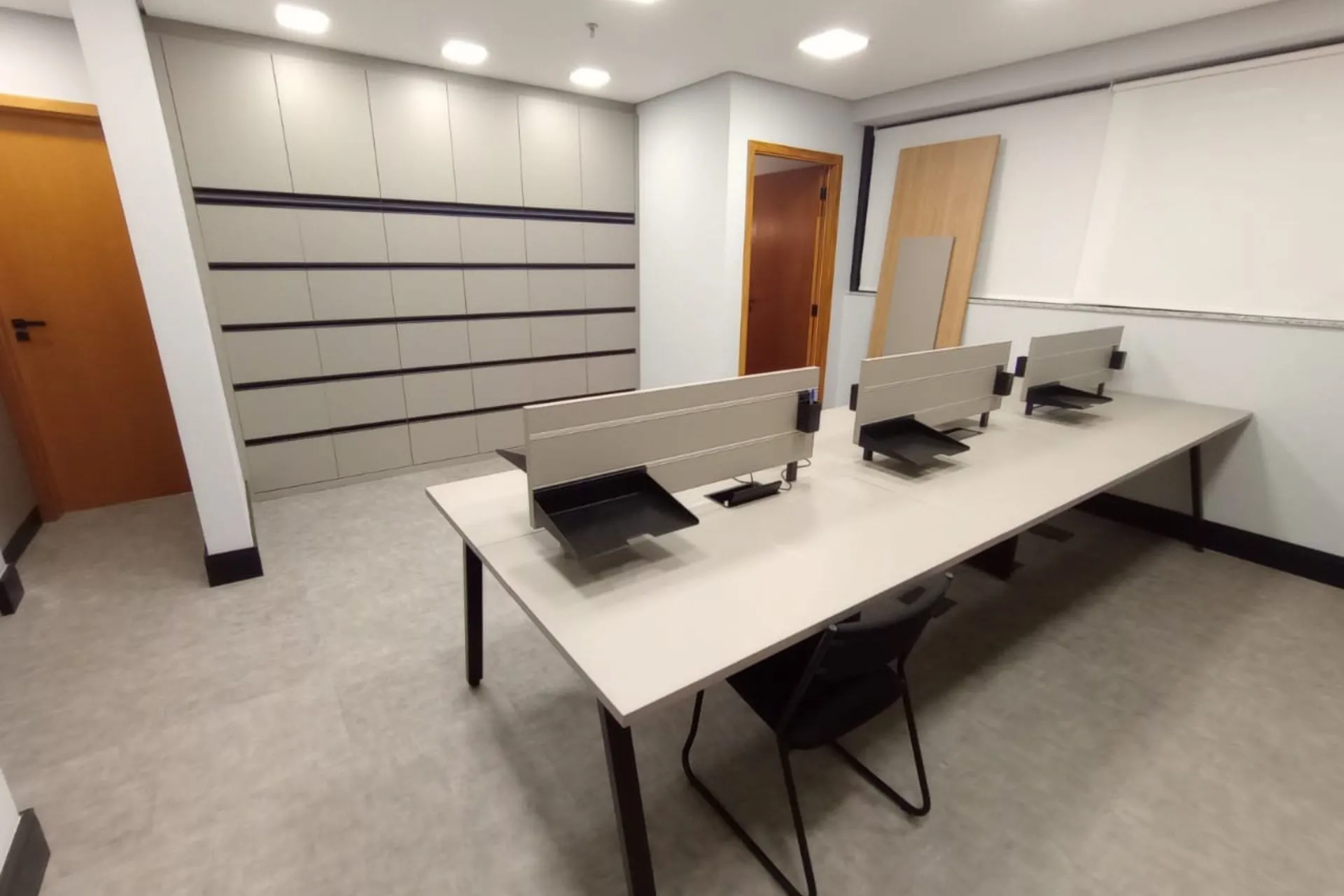 Funcionalidade e design sob medida para um ambiente profissional produtivo e sofisticado.